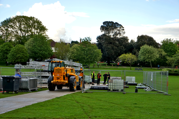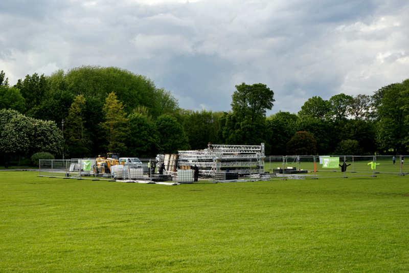 Setting up the performance required a lot of work beforehand, from bringing in the necessary generators, through erecting the stage and scaffolding to checking out the sound around the park.