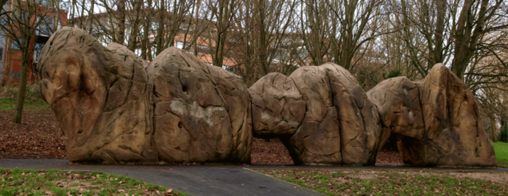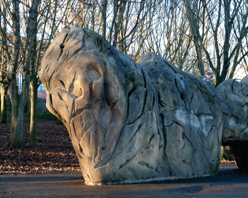 The climbing boulder is situated on the western side of the park, not far from the cafe. I always see a line of buffalo; others may not. What do you think?