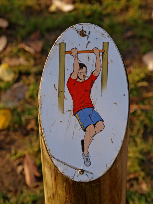 Each peice of equipment has a drawing by it indicating how it could be used.