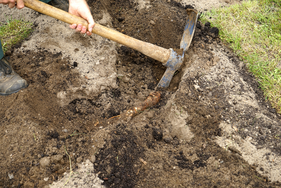 Even with the grass removed and the shape laid out, there were some surprises just under the surface - like this root.