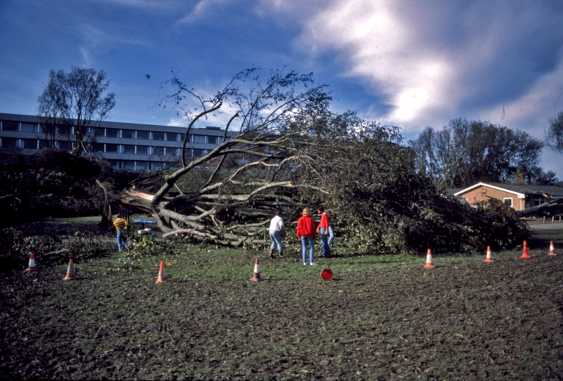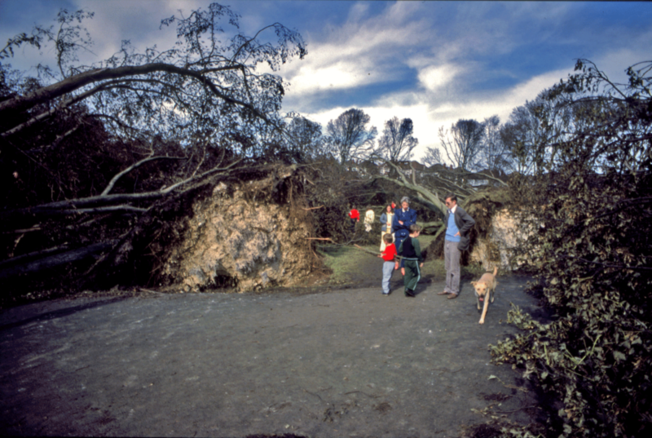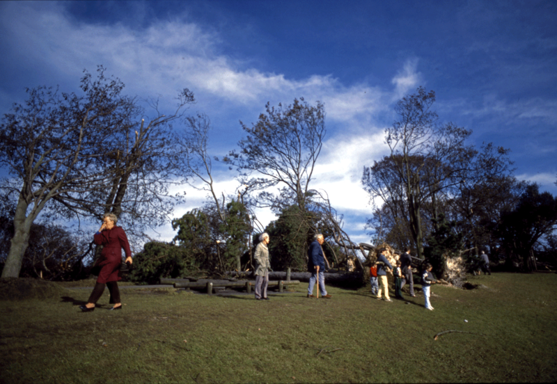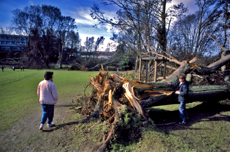 The Great Gale of 1987 had a dramatic effect on Hove Park. Many of the elms were toplled; on the morning after Goldstone Crescent was filled with branches. In the photos shown here, can you recognise the places from which they were taken? The chimney of the Engineerium can be seen in the first.